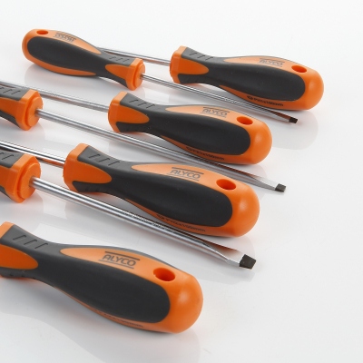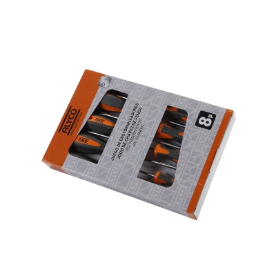 Juego de 8 destornilladores en Acero al Cromo-Vanadio, con 4 tipos de puntas diferentes. Múltiples soluciones en un juego.